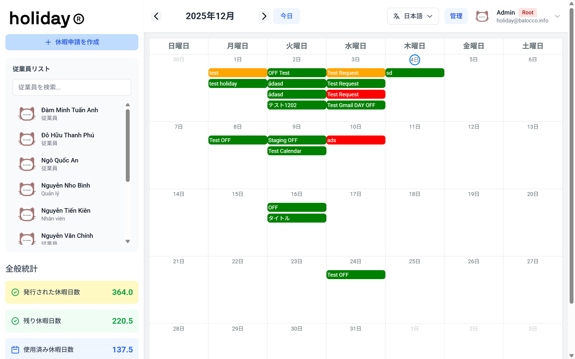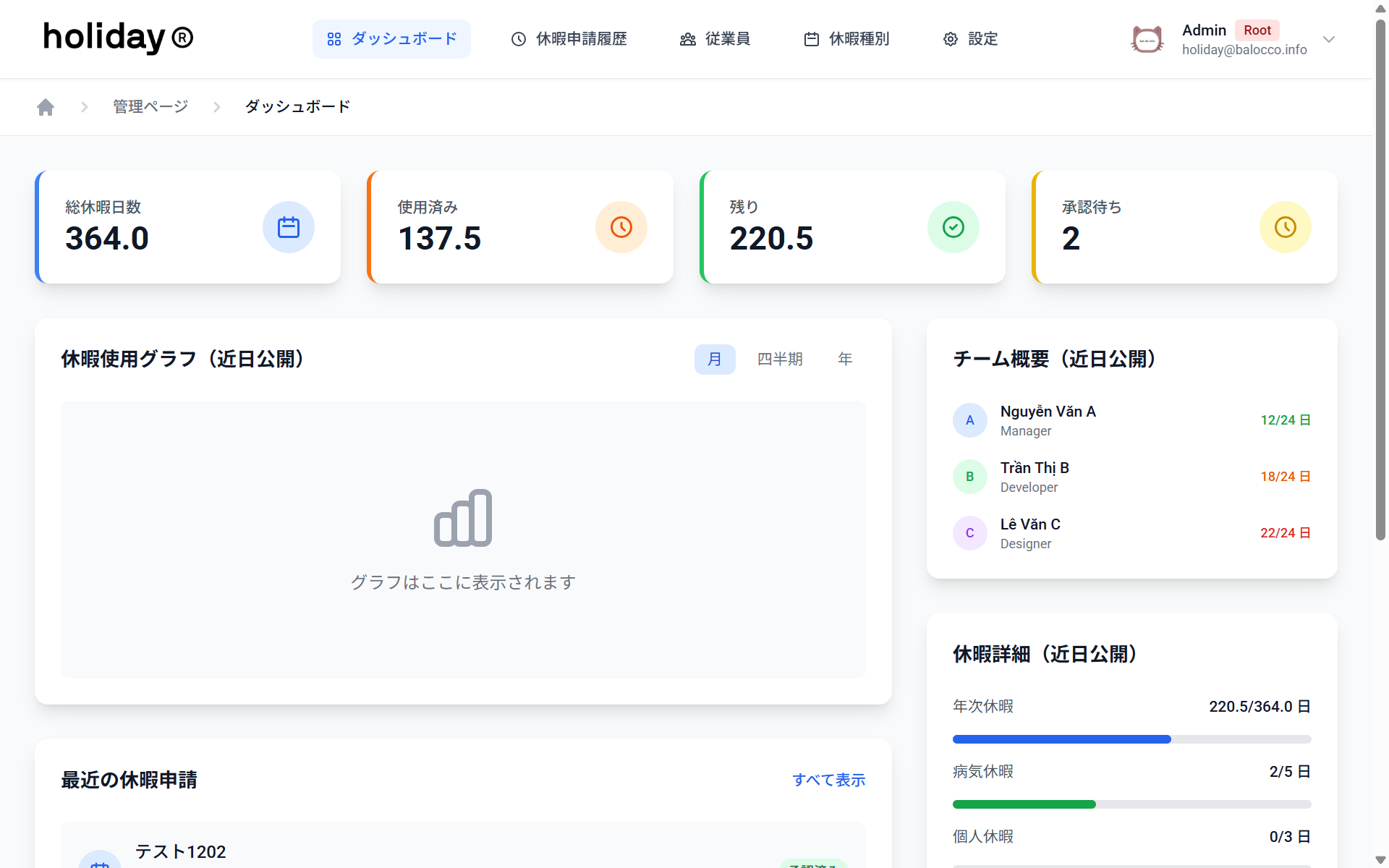 チームメンバーの休暇をパッと確認できます。